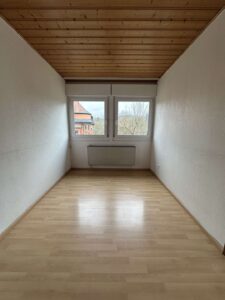 Das Erdgeschoss umfasst eine Küche, ein Esszimmer sowie ein Wohnzimmer mit Balkon. Zudem stehen ein Gäste-WC im Flur, eine Abstellkammer, ein Kinderzimmer sowie ein weiteres Kinder- oder Arbeitszimmer zur Verfügung.