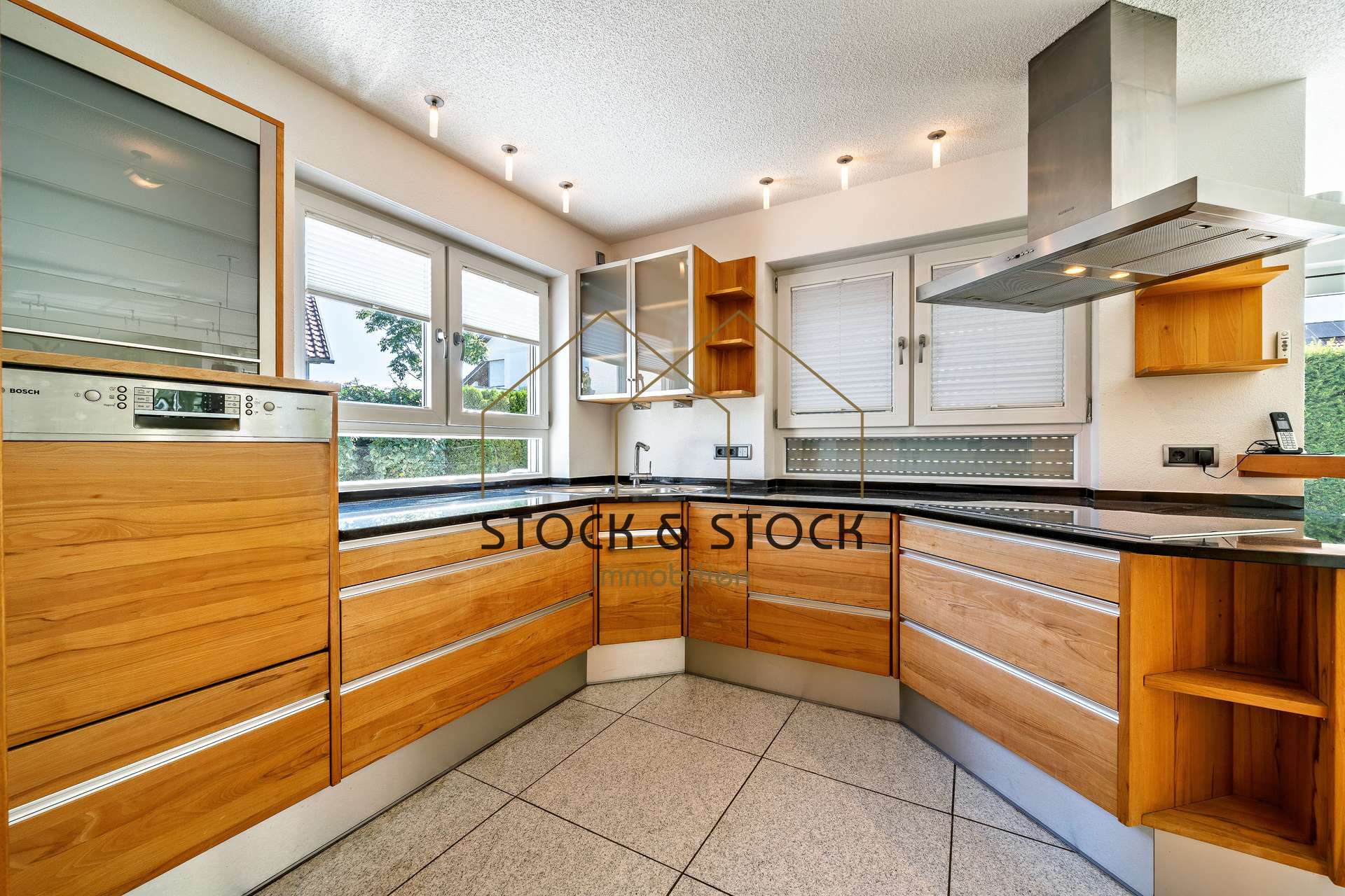 Das Herzstück der Immobilie bildet hierbei der großzügige Wohn-und Essbereich mit Kamin, der zum gemeinsamen Verweilen mit Familie und Freunden einlädt. Die angrenzende, halb offene Küche überzeugt mit hochwertigen Geräten sowie ausreichend Stauraum und Arbeitsfläche zum Backen und Kochen.