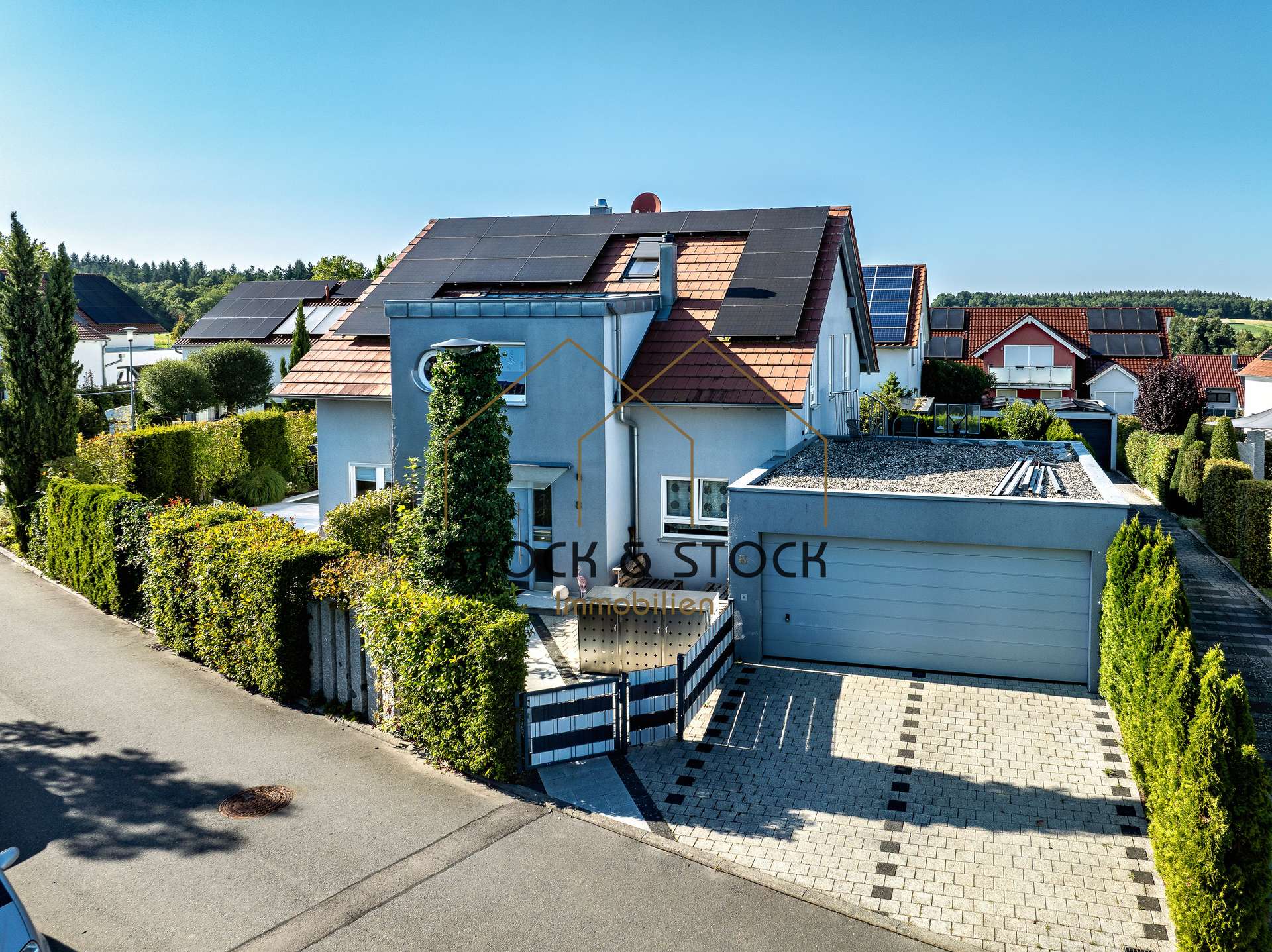 Die Immobilie in einem sehr guten Zustand: Im Jahr 2020 wurde die Aussenfassade gestrichen und 2021 wurden Teilbereiche der Außenanlage erneuert, der Swimmingpool erreichtet und eine Photovoltaikanlage zur Stromerzeugung auf dem Dach installiert.