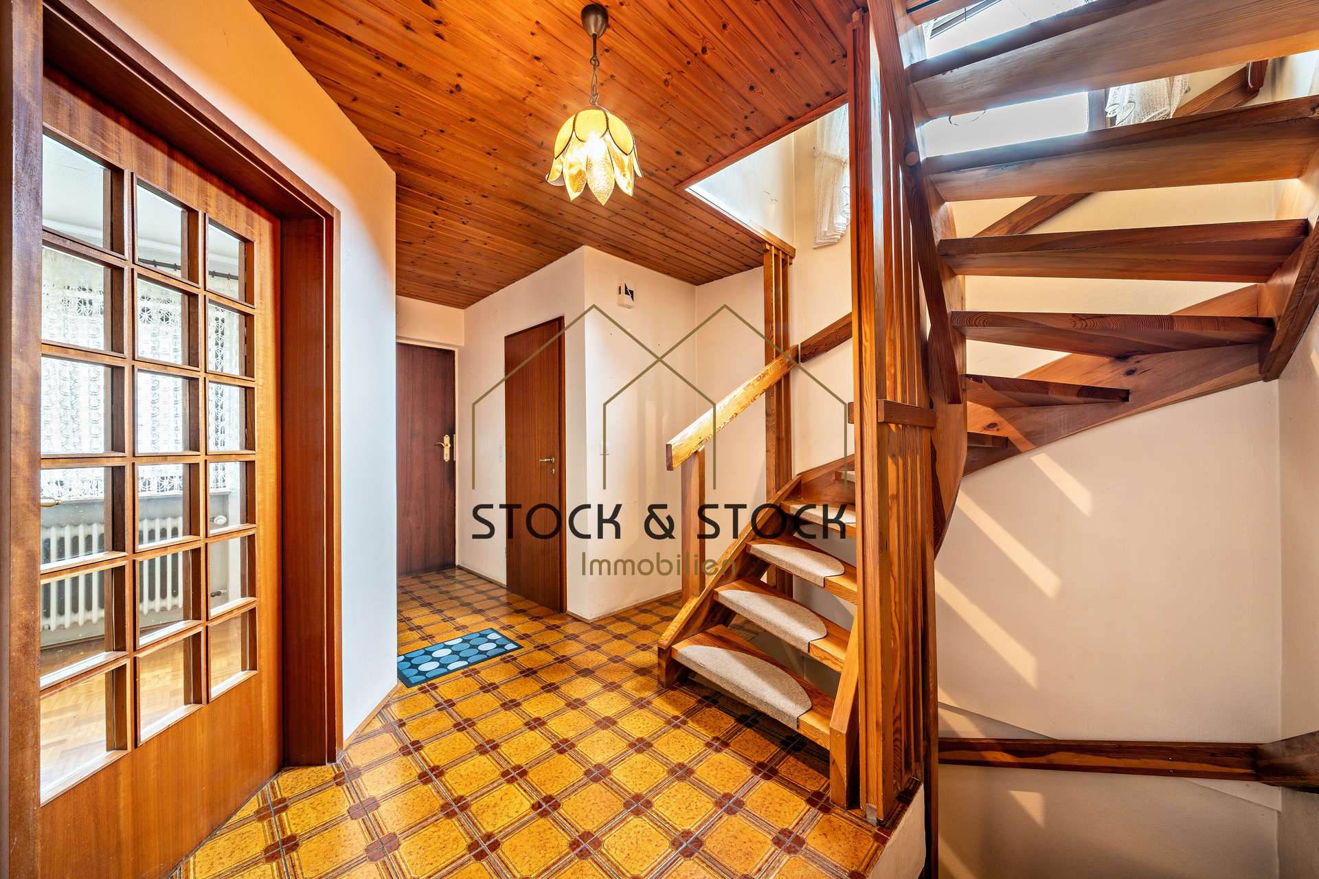 Im Obergeschoss befinden sich drei weitere Zimmer, zwei davon mit Zugang zum Balkon. Das Tageslichtbad ist mit einer Badewanne ausgestattet und bietet ausreichend Platz für die Familie.