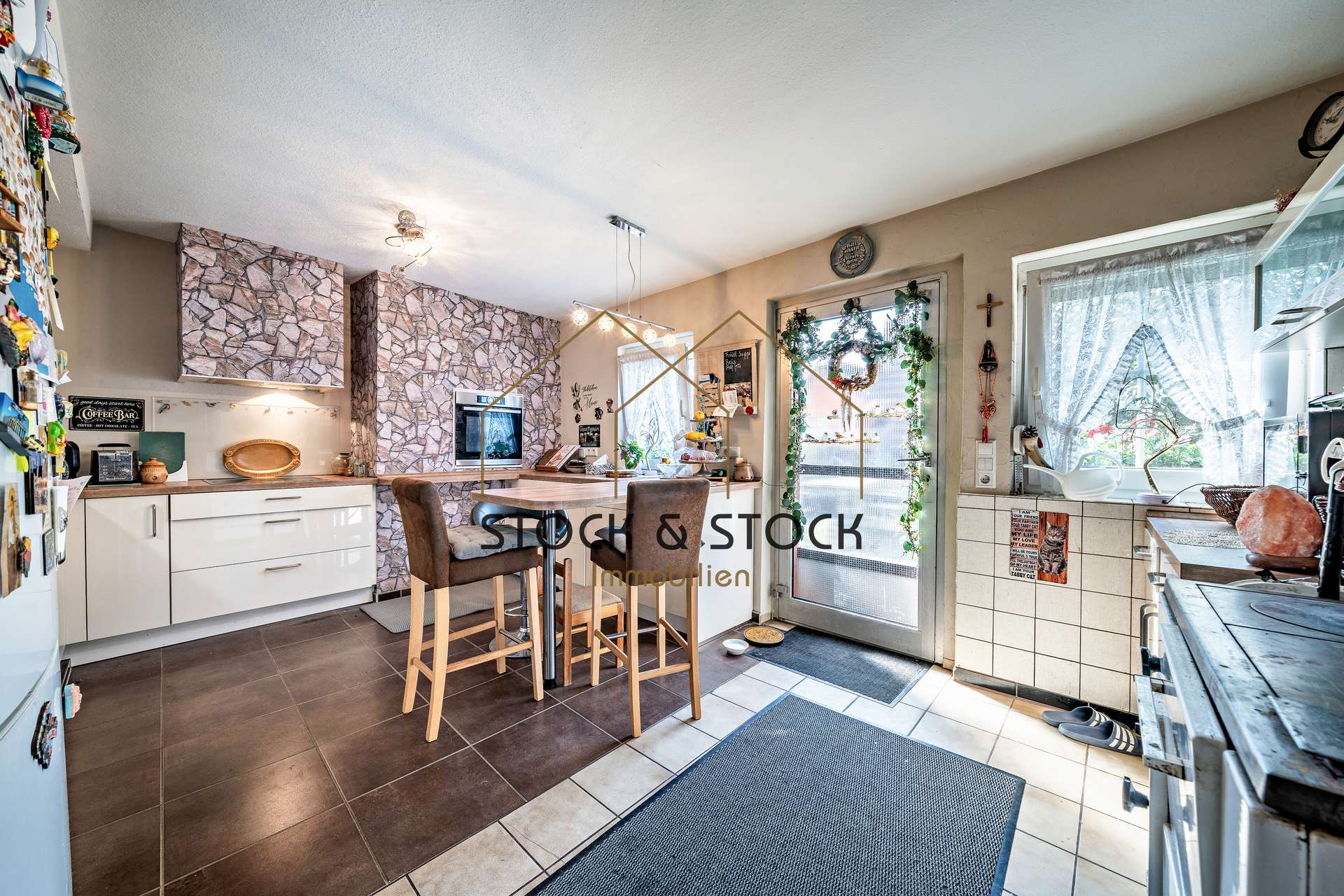 Die angrenzende, helle Küche mit eigenem Zugang zum Garten verfügt nicht nur über ausreichend Stauraum sondern auch über eine zusätzliche Sitzgelegenheit und eine großflächige Arbeitsplatte. Ein separates Gäste WC sowie ein Tageslichtbad mit Dusche und Badewanne runden diese Etage ab.