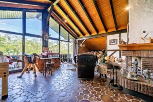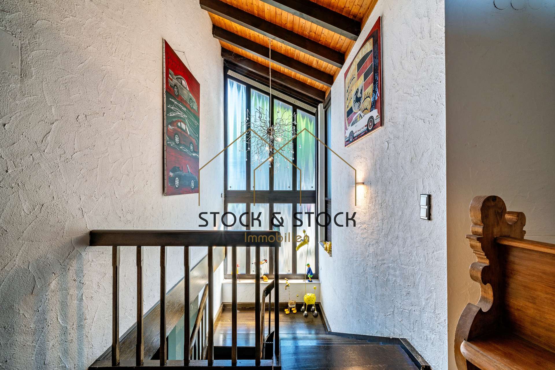 Das Obergeschoss besteht aus zwei gut geschnittenen Schlafzimmern, einem modernen Badezimmer mit Badewanne und ebenerdiger Dusche sowie einem wunderschönen Kaminzimmer, welches mit seiner hohen Decke, den rustikalen Sichtbalken, dem hochwertigen Fussboden und natürlich der grandiosen Fensterfront ein einmaliges, luftiges Wohngefühl vermittelt.