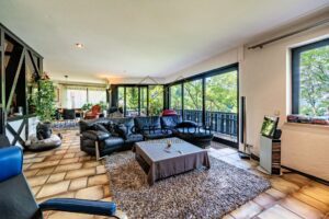 Die Immobilie wurde 1979 fertiggestellt und verfügt über rund 460 qm Wohnfläche, die sich auf drei Etagen verteilen.
