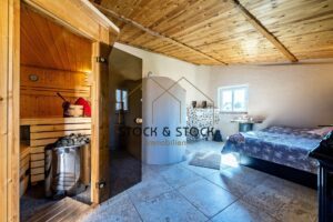 Hier befindet sich zudem eine im Jahr 2019 umgebaute Scheune, die, ausgestattet mit einer Sauna, Dusche und einem Kamin, einen gemütlichen Rückzugsort für kalte Tage bietet.