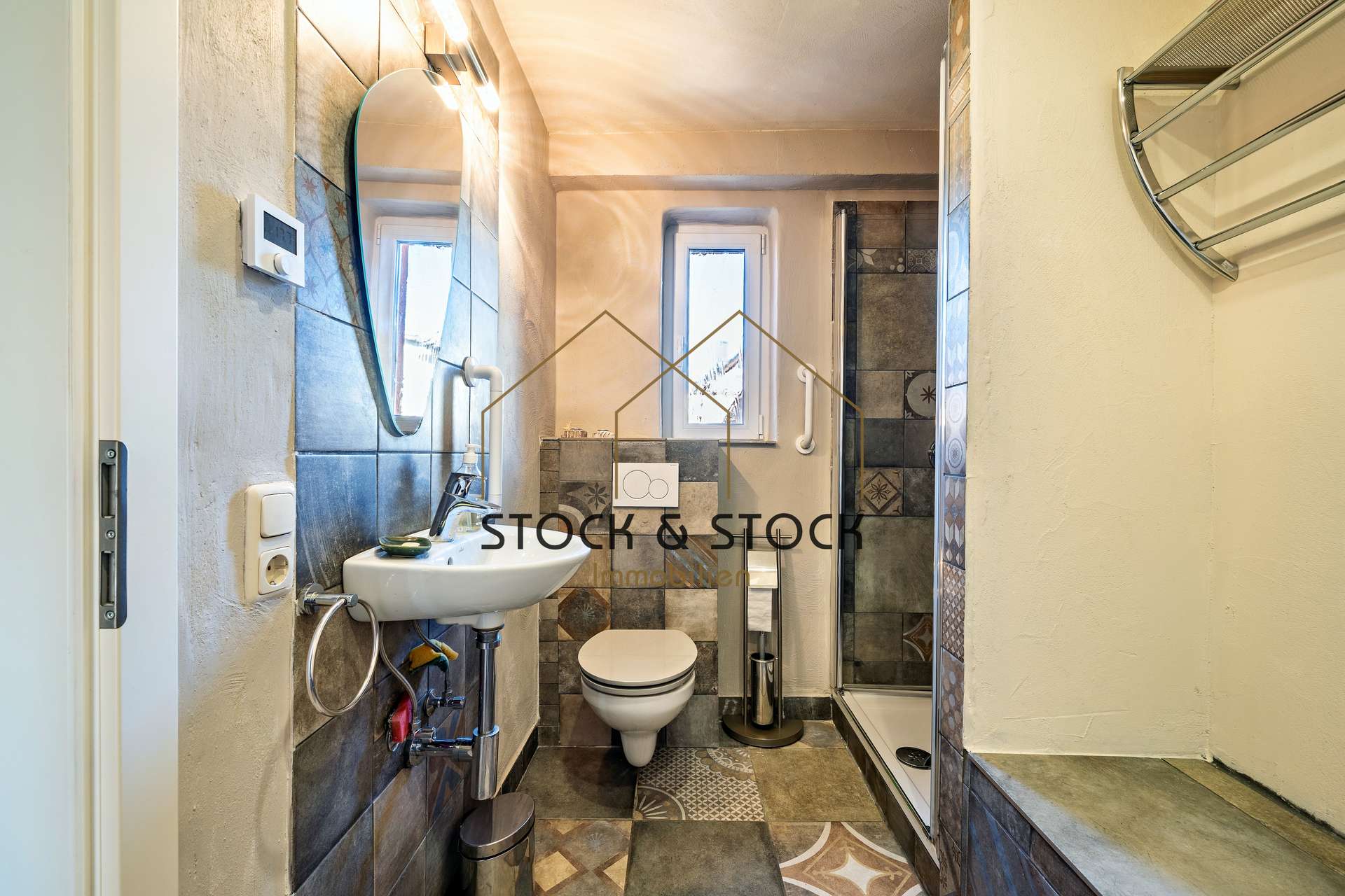 Vervollständigt wird das Erdgeschoss von dem vorhandenen Gäste WC mit Tageslicht und Dusche.